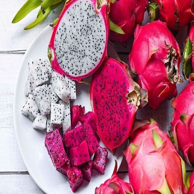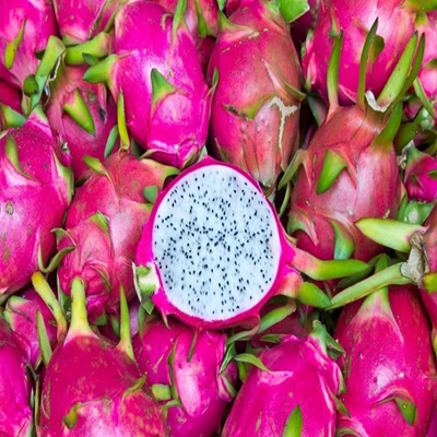 Dragon fruit features a bright pink or yellow skin with green scales and soft flesh dotted with tiny edible seeds. The taste is mildly sweet with a refreshing finish, making it ideal for fresh consumption. Thanh long có lớp vỏ hồng hoặc vàng rực rỡ với các tai xanh, phần ruột mềm chứa nhiều hạt nhỏ có thể ăn được. Vị ngọt nhẹ và thanh mát rất thích hợp để thưởng thức tươi.